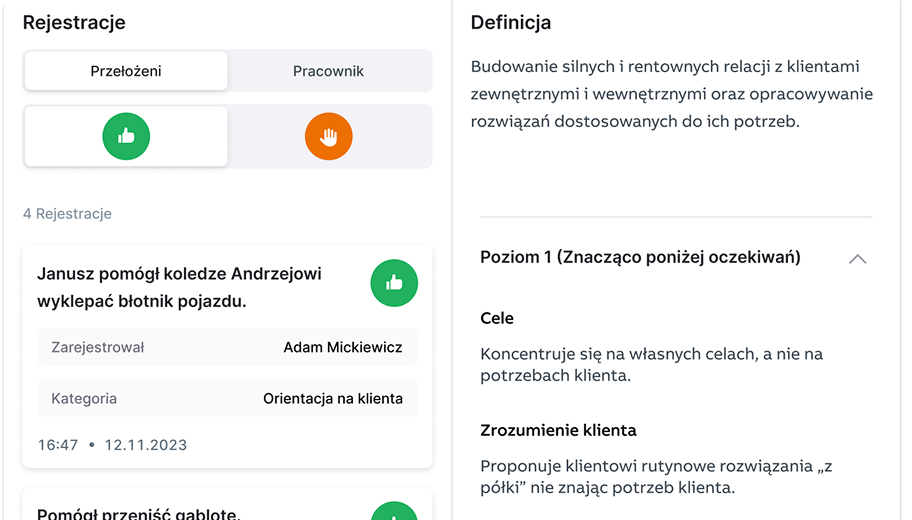 Możliwość włączenia do oceny opinii współpracowników lub podwładnych