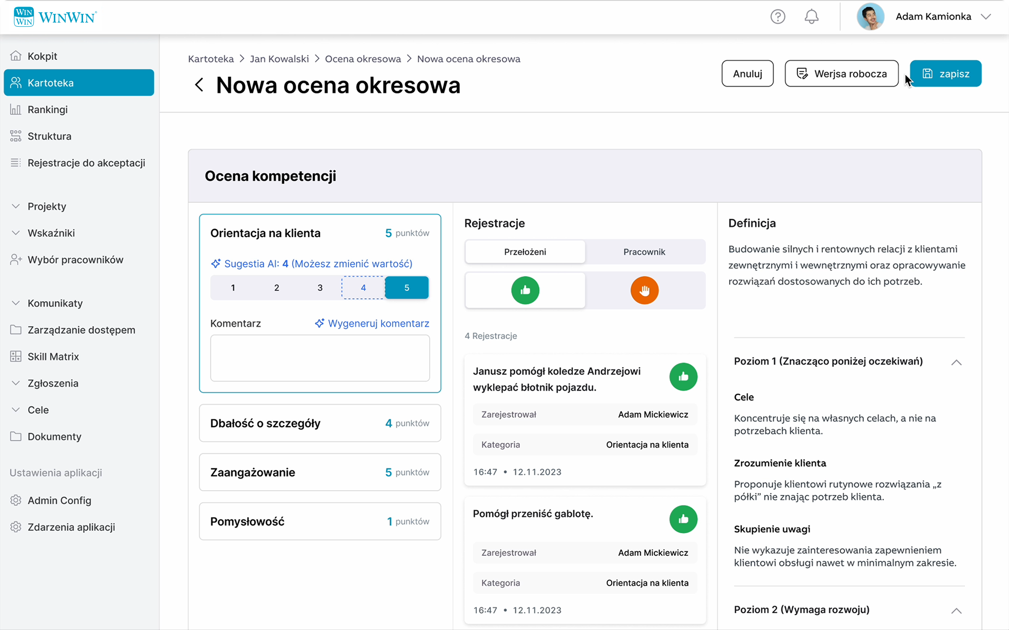 Ocena okresowa AI w WinWin
